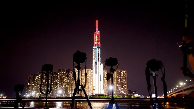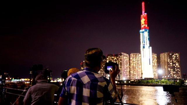 Từ 18h chiều 30/4, hàng nghìn người đã đổ về quanh khu vực tòa nhà Landmark 81 (quận Bình Thạnh, TP.HCM).