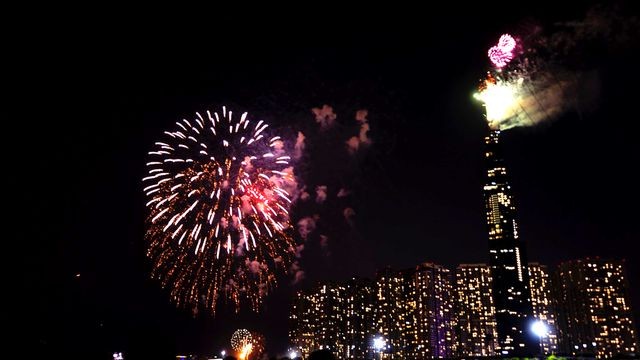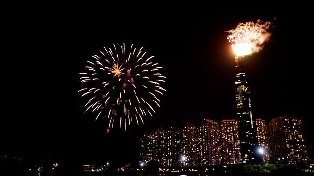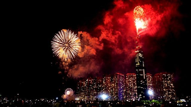 Pháo hoa lung linh trên bầu trời TPHCM đêm 30/4