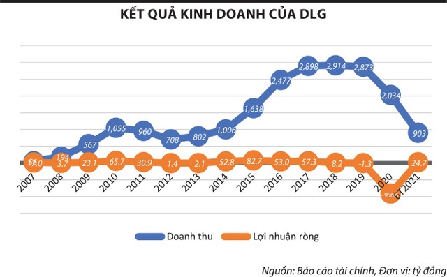Kết quả kinh doanh trong gần một thập kỷ qua cho thấy, giai đoạn 2017 - 2020 là thời kỳ đỉnh cao về doanh thu của DLG khi mỗi năm mang về trên dưới 3.000 tỷ đồng. Về lợi nhuận, doanh nghiệp đạt hiệu quả cao nhất vào các năm 2014 - 2017, dao động từ 52,8 - 82,7 tỷ đồng/năm. Đây là giai đoạn doanh nghiệp chuyển hướng sang mảng linh kiện điện tử, đánh dấu bằng việc mua lại công ty sản xuất linh kiện của Mỹ mang tên Mass Noble Investment Limited.