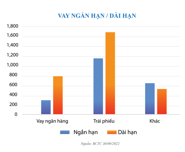 Hết quý III/2022, dư nợ vay dài hạn và tổng dư nợ trái phiếu chiếm lần lượt là 58% và 54% trên tổng số dư nợ vay của Phát Đạt. Được biết, trái phiếu phát hành được đảm bảo bằng cổ phiếu PDR, sở hữu bởi các cổ đông lớn của Công ty.