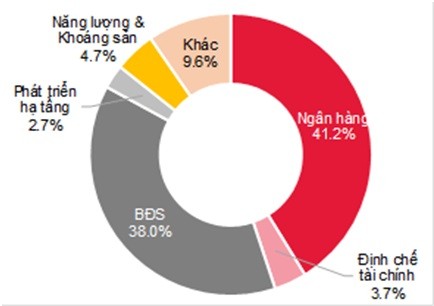 Thị phần phát hành trái phiếu của các ngành trong 6 tháng đầu năm. Nguồn: HNX, SSI.