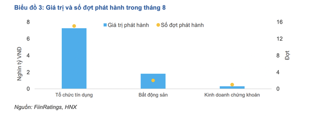 Trong tháng 8 chỉ có 19 đợt phát hành, chưa tính đến 3 lô trái phiếu phát hành không thành công của Ngân hàng Nông nghiệp và Phát triển Nông thôn Việt Nam. Các lô trái phiếu trên ngoài việc có thể do lãi suất chào bán thấp và chưa hấp dẫn, các nhà đầu tư chủ yếu là các ngân hàng khác cũng không thực sự có nhu cầu mua TPDN khi đã đảm bảo tỷ lệ an toàn vốn theo quy định cũng như chờ đợi việc nới room tín dụng để có thể giải ngân cho vay trong những tháng cuối năm.