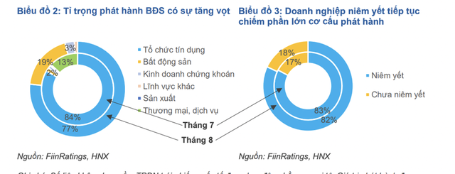 Các đợt phát hành lớn nhất của tháng 8/2022 được ghi nhận là Ngân hàng TMCP Ngoại thương Việt Nam (VCB) với giá trị TPDN đạt 1.500 tỷ đồng; Công ty cổ phần Fuji Nutri Food và Ngân hàng TMCP Phát triển TPHCM (HDBank) với giá trị phát hành cùng đạt 1.000 tỷ đồng.