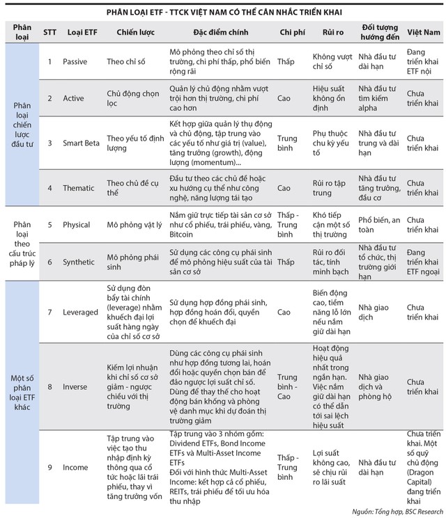 Hỗ trợ chính sách để khuyến khích tổ chức (quỹ hưu trí, BHXH) tham gia đầu tư ETF. Nghiên cứu cơ chế kết nối liên thông giữa các thị trường. |