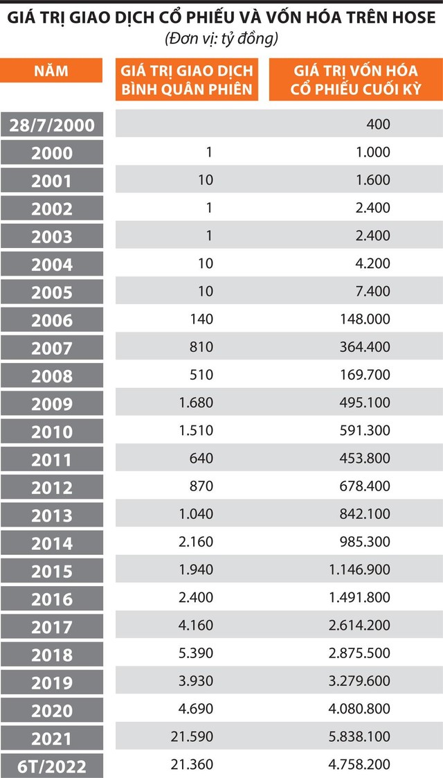 Phiên giao dịch đầu tiên diễn ra vào ngày 28/7/2000, đánh dấu sự ra đời chính thức của thị trường chứng khoán Việt Nam. Trong ký ức của nhiều thành viên còn gắn bó với thị trường vẹn nguyên hình ảnh hàng dài rồng rắn nhà đầu tư xếp hàng lấy số để được mua cổ phiếu. Từ những ngày đầu với dăm ba mã cổ phiếu như REE, SAM, đến nay, thị trường chứng khoán Việt Nam đã có hàng nghìn doanh nghiệp niêm yết.
