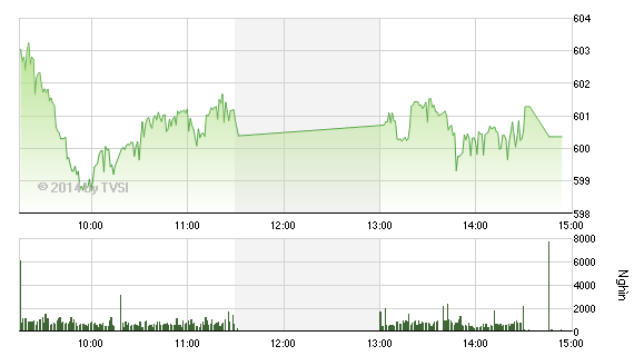 Tuy nhiên, bước vào đợt khớp lệnh xác định giá đóng cửa, sự giằng co giữa các mã lớn, khiến VN-Index mất gần 1 điểm, nhưng vẫn duy trì được mốc 600 điểm.