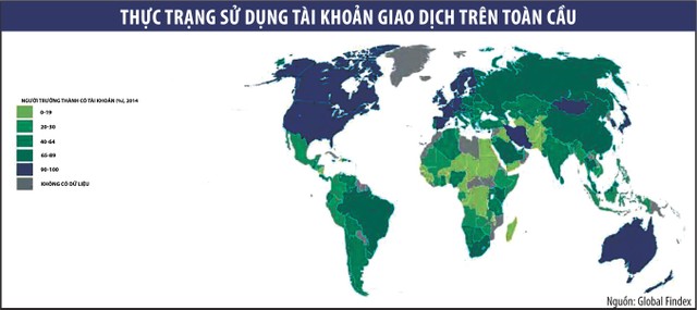 Cơ sở dữ liệu tài chính toàn cầu (Findex) cho thấy, mặc dù trong khoảng từ năm 2011 đến năm 2014 số người trưởng thành có tài khoản giao dịch đã tăng lên khoảng 700 triệu người, nhưng hiện nay còn gần 40% số người trưởng thành trên toàn thế giới - khoảng 2 tỷ người - vẫn không có tài khoản giao dịch để thực hiện thanh toán.
