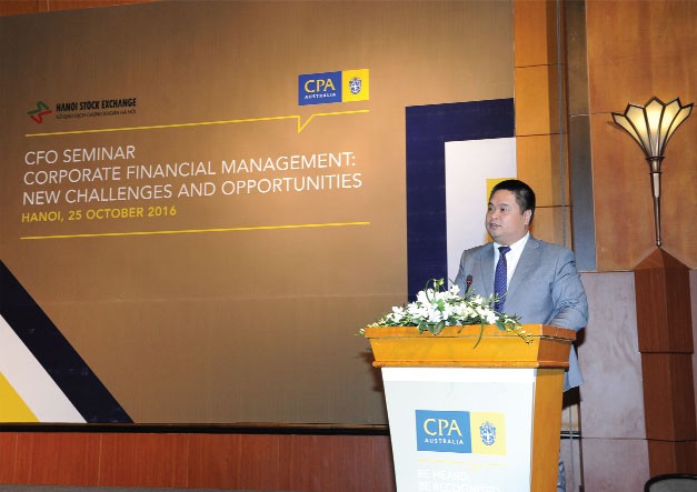 Ông Nguyễn Vũ Quang Trung phát biểu tại hội thảo giám đốc tài chính tổ chức ngày 25/10/2016
