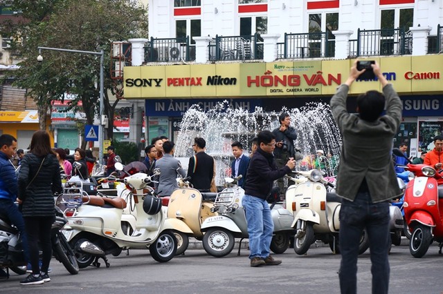 Nhiều nhiếp ảnh gia ngồi giữa đường thoải mái tác nghiệp, người đi xe máy cũng vừa đi vừa "selfie"