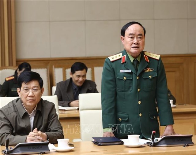 Thượng tướng Trần Đơn, Thứ trưởng Bộ Quốc phòng phát biểu tại cuộc họp. Ảnh: Văn Điệp - TTXVN