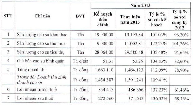 Tại nghị quyết, HĐQT PHR thông qua kết quả kinh doanh 2013 với tổng doanh thu 1.864 tỷ đồng, bằng 78,9% so với năm 2012 và vượt 12,09% kế hoạch (đã điều chỉnh); lợi nhuận sau thuế 371,54 tỷ đồng, bằng 58,73% so với năm 2012 và vượt 36,32% kế hoạch (đã điều chỉnh).