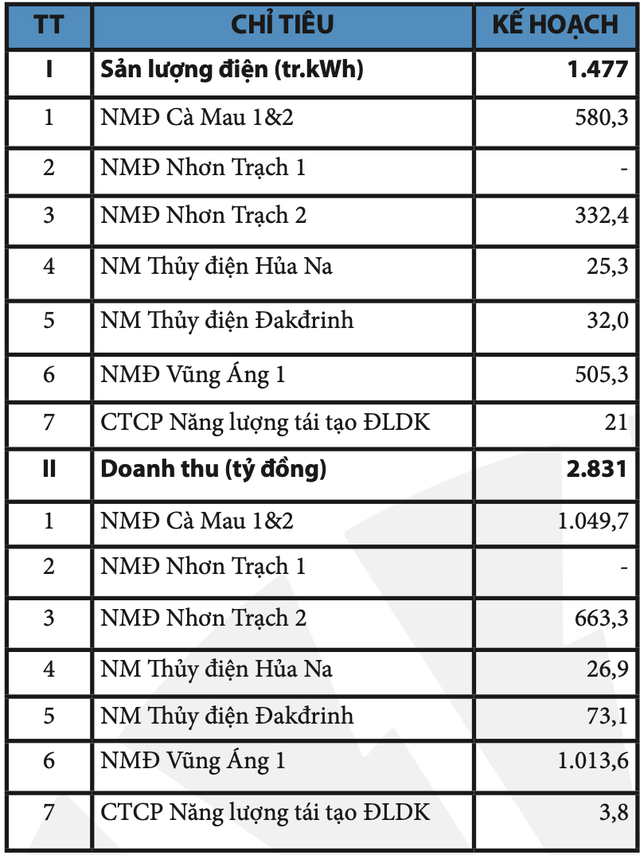 Về kế hoạch tháng 5, POW tiếp tục vận hành an toàn, ổn định và hiệu quả các nhà máy điện. Theo kế hoạch sản xuất kinh doanh năm 2023, Công ty dự kiến sản lượng điện đạt 1.477 triệu kWh và doanh thu đạt 2.831 tỷ đồng.