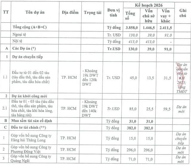 (ĐTCK) HĐQT Tổng CTCP Vận tải Dầu khí (PVTrans, mã PVT) mới ban hành quyết định phê duyệt kế hoạch sản xuất kinh doanh và đầu tư năm 2026 của Công ty.