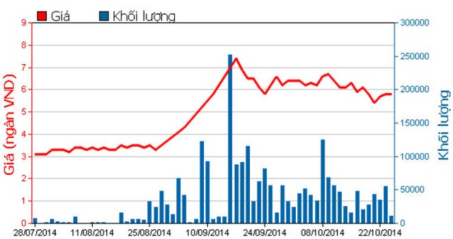 Biểu đồ giá, LKGD của cổ phiếu PXT trong 3 tháng qua. Nguồn: HOSE