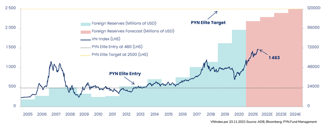 Trong nhiều báo cáo trước đó, quỹ ngoại đến từ Phần Lan đánh giá VN-Index sẽ tăng lên 1.800 trong dài hạn. Tuy nhiên, trong thông điệp mới nhất gửi tới nhà đầu tư, ông Petri Deryng, Giám đốc đầu tư của PYN Elite Fund cho biết, ngưỡng mục tiêu 1.800 điểm được đưa ra tại thời điểm dự trữ ngoại hối của Việt Nam còn yếu và lợi suất trái phiếu chính phủ là 8%/năm.