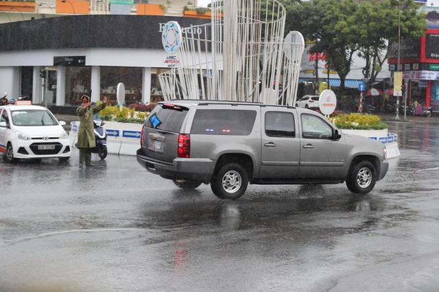 Người dân hiếu kỳ đội mưa chụp ảnh mỗi khi có đoàn xe đi qua