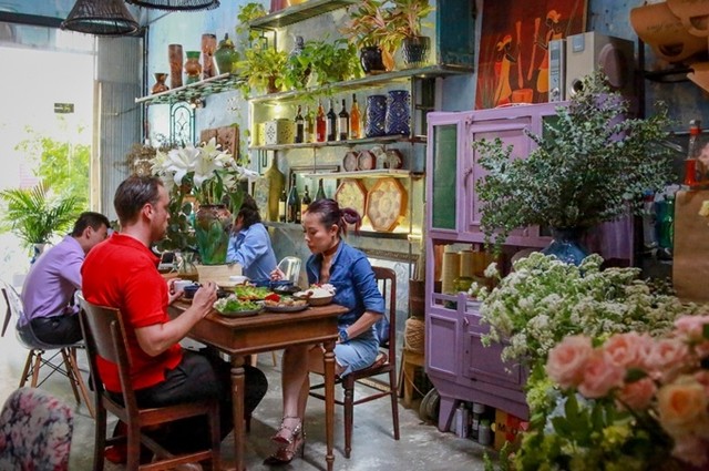 Nhiều du khách nước ngoài thích khám phá mâm cơm gia đình người Việt trong không gian nhiều hoa tươi.