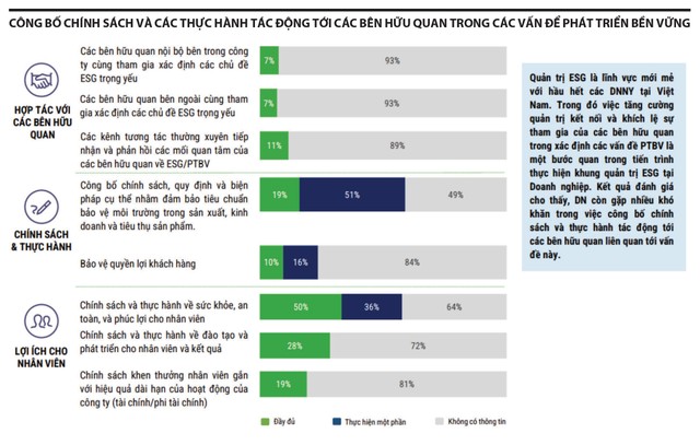 Số lượng doanh nghiệp thực hiện kiểm định độc lập đối với các nội dung như phát thải khí nhà kính, quản lý rủi ro khí hậu hay tuân thủ chính sách môi trường tăng lên đáng kể. Điều này cho thấy ESG đã dần trở thành phần không thể thiếu trong hệ thống quản trị, thay vì chỉ mang tính hình thức như những năm đầu triển khai.