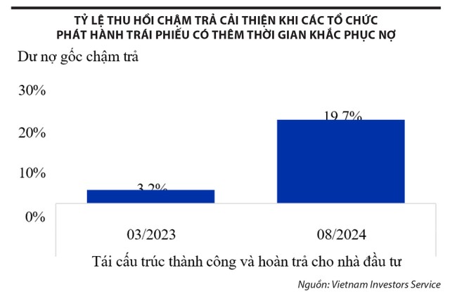 Sau giai đoạn khủng hoảng thanh khoản và chậm trả từ tháng 9/2022 đến tháng 6/2023, thị trường trái phiếu doanh nghiệp dần có dấu hiệu tích cực trở lại nhờ các chính sách về giải quyết nợ xấu. Từ tháng 3/2023, hơn 200 trái phiếu được gia hạn, chủ yếu thêm 22 tháng, theo Nghị định 08/2023/NĐ-CP được Chính phủ ban hành ngày 5/3/2023, là nghị định sửa đổi, bổ sung và tạm ngưng hiệu lực một số điều của Nghị định 65/2022/NĐ-CP và các nghị định khác liên quan đến chào bán và giao dịch trái phiếu doanh nghiệp riêng lẻ. Điều này giúp nhiều tổ chức phát hành có tình hình tài chính yếu và nợ cao tránh được nguy cơ chậm trả.