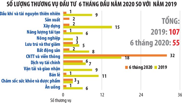 Số liệu thống kê cho thấy, mặc cho tình hình khó khăn với việc hạn chế di chuyển, đóng cửa biên giới ở một số quốc gia, số lượng các giao dịch PE trong 6 tháng đầu năm 2020 không hề thuyên giảm, mà vẫn đạt trên 50% tổng số lượng giao dịch của năm 2019 (55 giao dịch trong 6 tháng 2020 so với 107 giao dịch trong cả năm 2019).