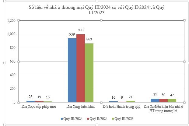 Số lượng các dự án phát triển nhà ở thương mại đã hoàn thành trong quý III/2024 có 16 dự án với quy mô khoảng 3.314 căn, số lượng dự án bằng 177,7% so với quý II/2024 và bằng 76,1% so với cùng kỳ năm 2023.
