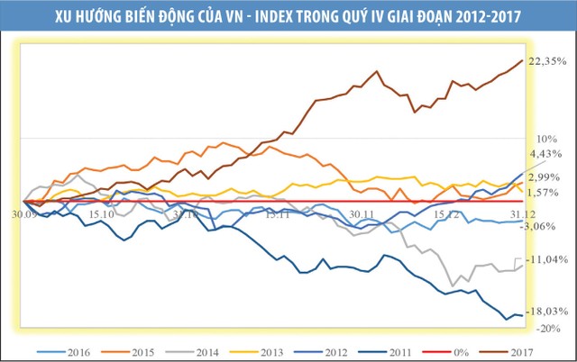 Thống kê trong 6 năm trở lại đây, diễn biến thị trường tăng điểm thường chiếm ưu thế trong quý IV, nhưng sự phân hóa giữa các tháng khá rõ nét.
