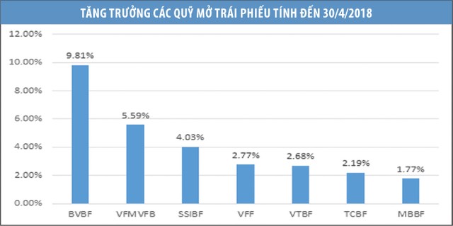 Đà tăng trưởng được duy trì đến hết tháng 4/2018, khi quy mô các quỹ mở gần chạm mốc 11.000 tỷ đồng, tăng 38% trong vòng 4 tháng. Cơ cấu theo tài sản đầu tư của các quỹ cũng có sự chuyển đổi khi các quỹ cổ phiếu vươn lên chiếm tỷ trọng lớn nhất (49%), thay vì các quỹ trái phiếu như thời điểm cuối năm 2017. Sự thay đổi này đến từ sự tăng trưởng quy mô mạnh mẽ của một số quỹ như VFMF4, VEOF, MBVF.