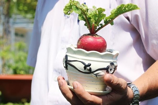 Ông Tài cho biết, doanh thu và lợi nhuận từ việc đưa rau củ vào chậu kiểng bán Tết cao hơn nhiều so với trồng các loại hoa khác, ước tính sau khi trừ chi phí có thể lãi hơn 70%. Củ cải đỏ vào chậu có chu vi khoảng 50cm, giá bán 100.000 đồng một chậu thích hợp để chưng trên bàn làm việc và tiếp khách vào dịp tết.