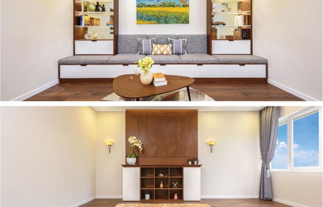 Thiết kế ở Rosita Garden khá độc đáo vì có rất nhiều không gian có thể tùy biến theo sở thích. Ngoài phòng khách, phòng bếp và phòng ngủ, gia đình chị Hạnh còn có một phòng đọc sách nhẹ nhàng đặt giữa lầu 2, một nơi rộng rãi để thờ được bố trí trang trọng ở lầu 3. Tất cả đều rất thoáng đãng và ngập tràn ánh sáng tự nhiên.