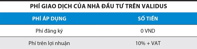 Theo Validus, tùy thuộc vào sản phẩm đầu tư, tỷ suất lợi nhuận ròng trung bình nhà đầu tư đạt được sẽ từ 12%/năm trở lên.