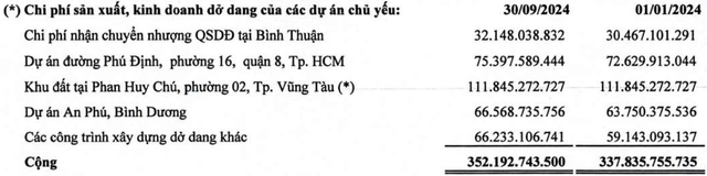 Bên cạnh đó, SGR còn 1.021,2 tỷ đồng là các khoản phải thu ngắn hạn, tăng 9% so với đầu năm. Ngoài ra, hàng tồn kho SGR giảm nhẹ về 525,2 tỷ đồng; bao gồm 352,2 tỷ đồng chủ yếu là chi phí sản xuất, kinh doanh dở dang tại các dự án.