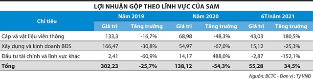Được biết, trong năm 2021, SAM đặt kế hoạch kinh doanh với tổng doanh thu 3.313,4 tỷ đồng, lợi nhuận trước thuế là 195,07 tỷ đồng, lần lượt tăng trưởng 59,1% và 55,5% so với thực hiện trong năm 2020. Sau 6 tháng đầu năm, Công ty mới thực hiện được khoảng 15% kế hoạch lợi nhuận năm.