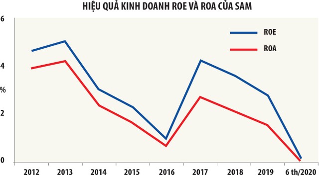 Năm 2020, trong 6 tháng đầu năm, SAM Holdings ghi nhận doanh thu 806,2 tỷ đồng, lợi nhuận sau thuế 7,5 tỷ đồng, lần lượt giảm 31,2% và 55,4% so với cùng kỳ, hoàn thành 17% kế hoạch lợi nhuận trước thuế cả năm. Biên lợi nhuận gộp giảm 9,6%, về còn 5,1% và biên lợi nhuận ròng giảm từ 1,4% về 0,9%.