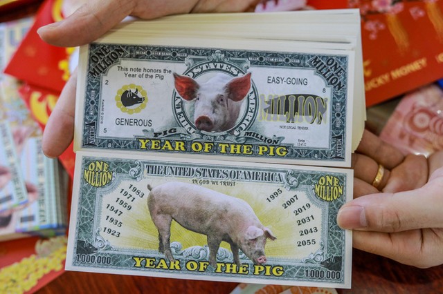 Gần một tháng nữa mới đến Tết Nguyên đán nhưng nhiều cửa hàng kinh doanh tiền lưu niệm tại TP HCM đã rục rịch sưu tầm, mua bán các loại tiền in hình linh vật con heo.