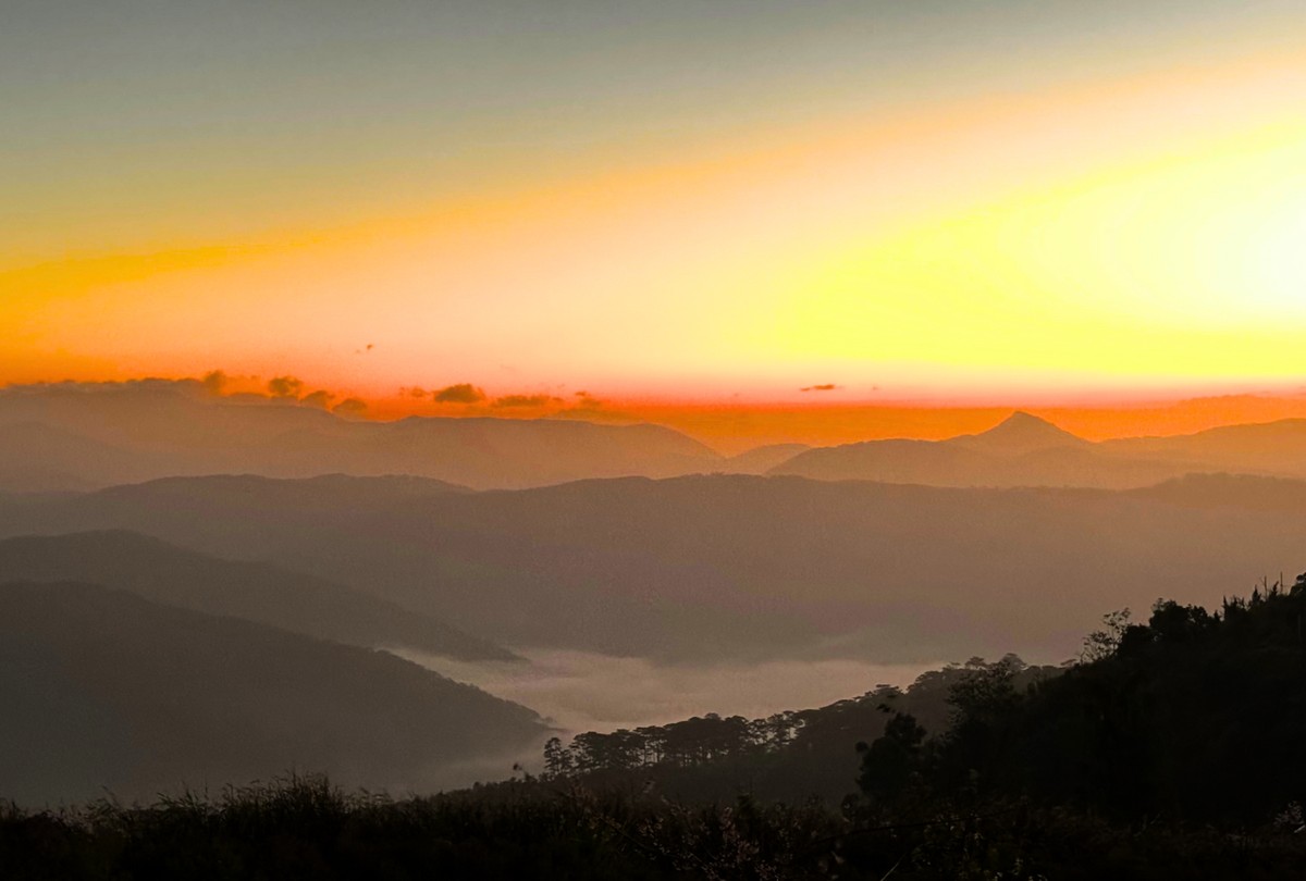 Khi mặt trời còn chưa tỉnh giấc, giữa đại ngàn tràn ngập là mùi hương ngai ngái của cỏ cây, những giọt sương đêm còn ngái ngủ giăng trên từng nhành cây, ngọn cỏ, là lớp lớp, tầng tầng mây mù mênh mông, bồng bềnh, lãng đãng quẩn quanh khắp không gian; là cơn gió nhẹ mang hương rừng luồn vào từng chân tơ, kẽ tóc… tất cả đều bình yên và trong treo vô ngần.