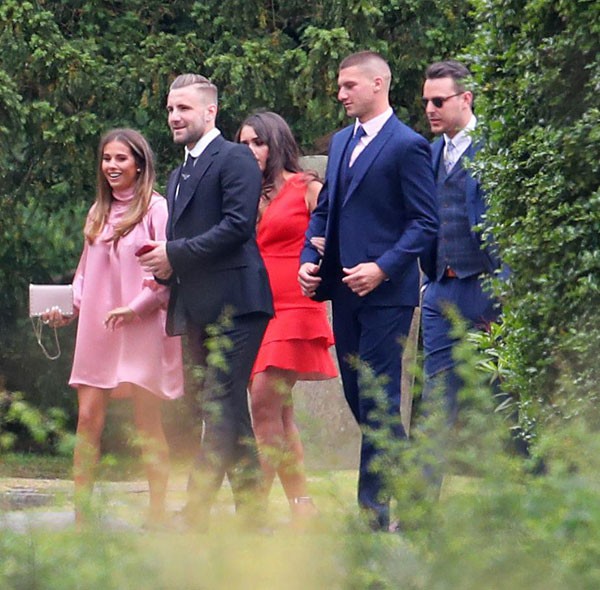 Rooney, Luke Shaw và Chris Smalling tới dự hôn lễ của đồng đội Phil Jones trên chiếc xe bus quen thuộc.