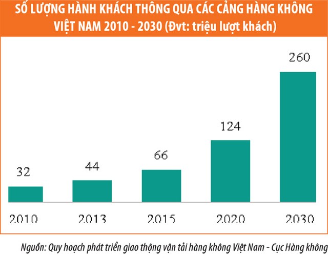 Theo dự báo của các tổ chức hàng không quốc tế, Việt Nam sẽ là 1 trong 10 nước có tốc độ tăng trưởng hành khách quốc tế cao nhất trên thế giới tới năm 2017. Số lượng hành khách qua các cảng hàng không của Việt Nam có thể đạt 66 triệu lượt vào năm 2015, tăng trên 15%/năm trong giai đoạn 2010 - 2015.