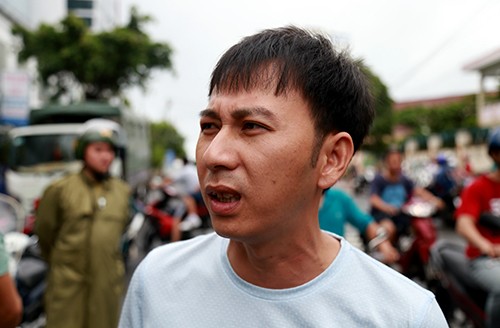 Anh Giáo, người trong đoàn khách du lịch, may mắn thoát được ra ngoài khi tường quán phở đổ xuống. Ảnh: Xuân Ngọc.