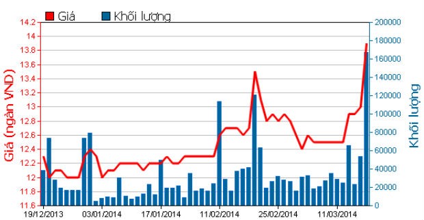 Biểu đồ giao dịch, khối lượng của cổ phiếu SBT trong 3 tháng gần đây. Nguồn: HOSE.