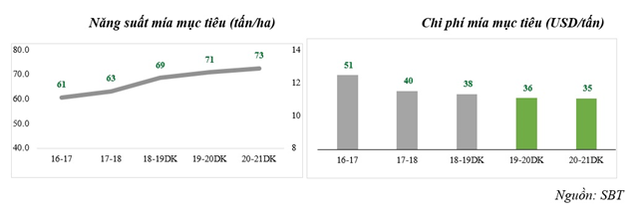 So với Thái Lan, có thể nhìn nhận một cách công bằng rằng năng suất đường bình quân/ha mía của SBT hoàn toàn tương đương với một trong những ông lớn của Mía đường thế giới, đó là Thái Lan, trong khi chi phí bình quân của quốc gia này lại đang vượt SBT.