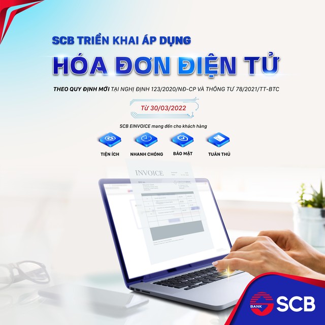 Với đặc thù ngành ngân hàng phải sử dụng hóa đơn với số lượng lớn, SCB đã chủ động triển khai áp dụng HĐĐT từ ngày 01/08/2018 nhằm mang lại tiện ích tối ưu nhất cho khách hàng khi giao dịch với ngân hàng. Năm 2022, SCB tiếp tục là một trong các ngân hàng tiên phong hoàn thành nhất mục tiêu chuyển đổi áp dụng HĐĐT theo Nghị định 123/2020/NĐ-CP trước ngày 31/03/2022 (nằm trong giai đoạn 1 của lộ trình triển khai HĐĐT theo chủ trương của Chính phủ).