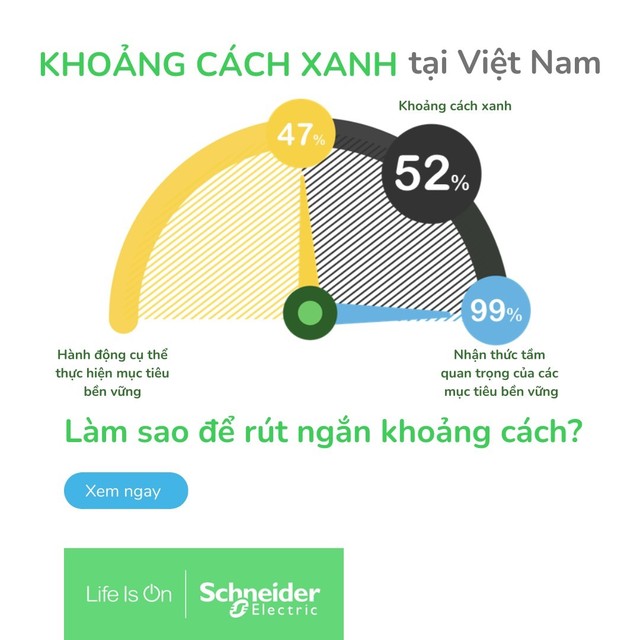 Schneider Electric đã sáng tạo ra thước đo Green Action Gap, nghĩa là “Khoảng cách Xanh”. Thước đo này dùng để xác định khoảng cách giữa nhận thức và hành động cụ thể để thực hiện mục tiêu phát triển bền vững. Khoảng cách Xanh càng nhỏ, khát vọng về sự bền vững và hành động để đạt được các cam kết sẽ càng gần hơn.