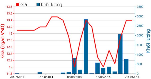 Biểu đồ giá, khối lượng giao dịch của cổ phiếu RDP trong 1 tháng qua. Nguồn: HOSE