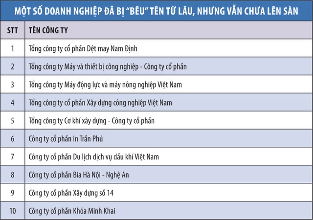 Ngày 3/7/2017, Bộ Tài chính có công văn báo cáo Thủ tướng Chính phủ danh sách 730 doanh nghiệp đã cổ phần hóa nhưng chưa đăng ký giao dịch, niêm yết trên thị trường chứng khoán.