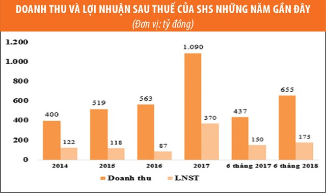Trong đó, hoạt động tự doanh đóng góp 254,27 tỷ đồng, gấp 1,85 lần; hoạt động cho vay ký quỹ đóng góp 194,13 tỷ đồng, gấp 1,25 lần; hoạt động môi giới đóng góp 143,13 tỷ đồng, gấp 1,3 lần cùng kỳ năm ngoái. Với kết quả kinh doanh 6 tháng 2018, EPS trượt 4 quý gần nhất của SHS là 4.512 đồng, tương ứng với mức P/E trượt (P/E Trailing) là 3,2 lần.
