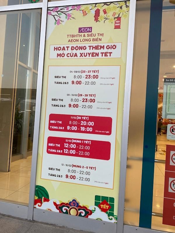 AEON là hệ thống siêu thị duy nhất công bố mở cả các ngày tết. Vì vậy, chiều 30 Tết nơi đây vẫn nhộn nhịp người mua sắm.