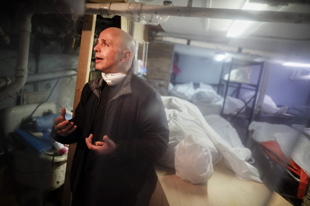 Ông Marmo dẫn phóng viên AP vào bên trong nhà tang lễ Daniel J. Schaefer của ông ở khu Sunset Park, quận Brooklyn ngày 2/4. Đang có khoảng 20 thi thể trên các giường đặt trên giá ở dưới tầng hầm, và một tá thi thể khác ở trong nhà nguyện, giờ đây đã chuyển thành phòng lạnh để bảo quản. Ông ước tính khoảng 60% là tử vong do đại dịch. “Cảm giác siêu thực”, ông nói.