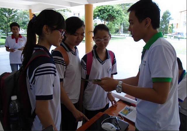 Cộng tác viên cuộc thi tuyên truyền thông tin cho cuộc thi tại cơ sở A - ĐH Kinh tế TP.HCM