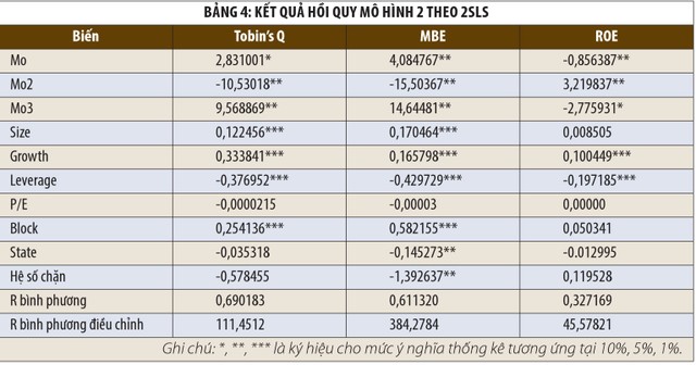 Dữ liệu được xử lý thông qua hồi quy hai bước (2SLS) để khắc phục hiện tượng nội sinh.