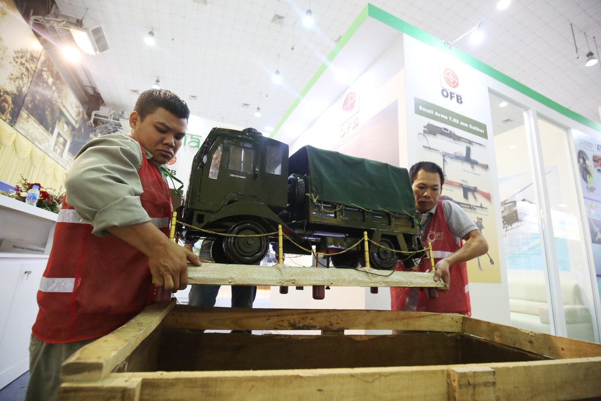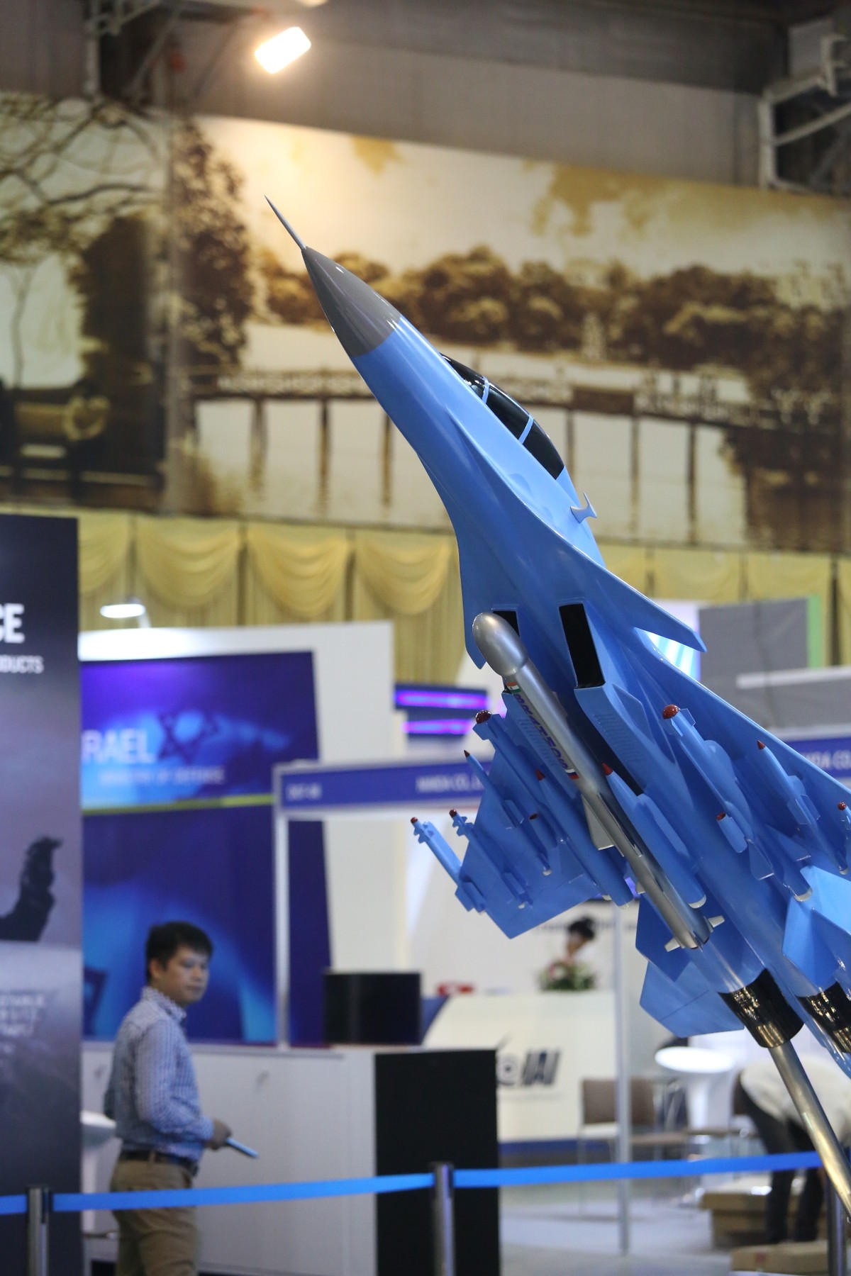 Các mô hình trưng bày đều được làm chính xác theo nguyên mẫu thực. Trong ảnh là mô hình máy bay chiến đấu của công ty quân sự Ấn Độ.